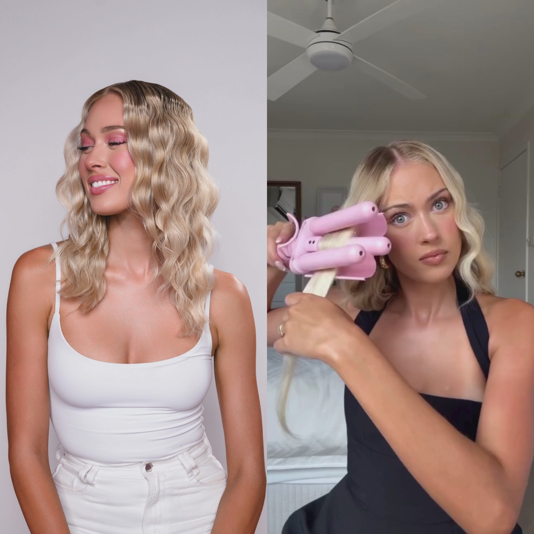 Create mini waves in seconds with the 25mm Pro Waver in pure pink. This must-have hair tool creates beachy, 90s, boho or glam waves in seconds. It's the game-changer for hair – any length or texture. This medium sized waver is the little sister of the 32mm waver, it creates a smaller more defined wave for that on-trend ripple effect.