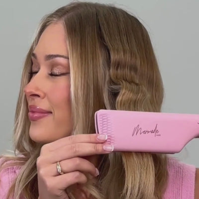 Step 4: Once you have finished waving, make sure the hair has completely cooled down before touching to allow it time to set. For a beachy effortless wave, brush the wave out with our Mermade Brush or comb through. Finish by using an extra spray of Mermade Mist for hold and shine, or a flexible workable spray or a lacquer spray for more hold.