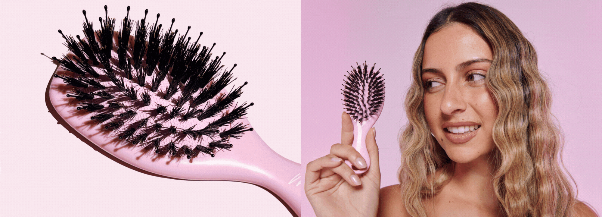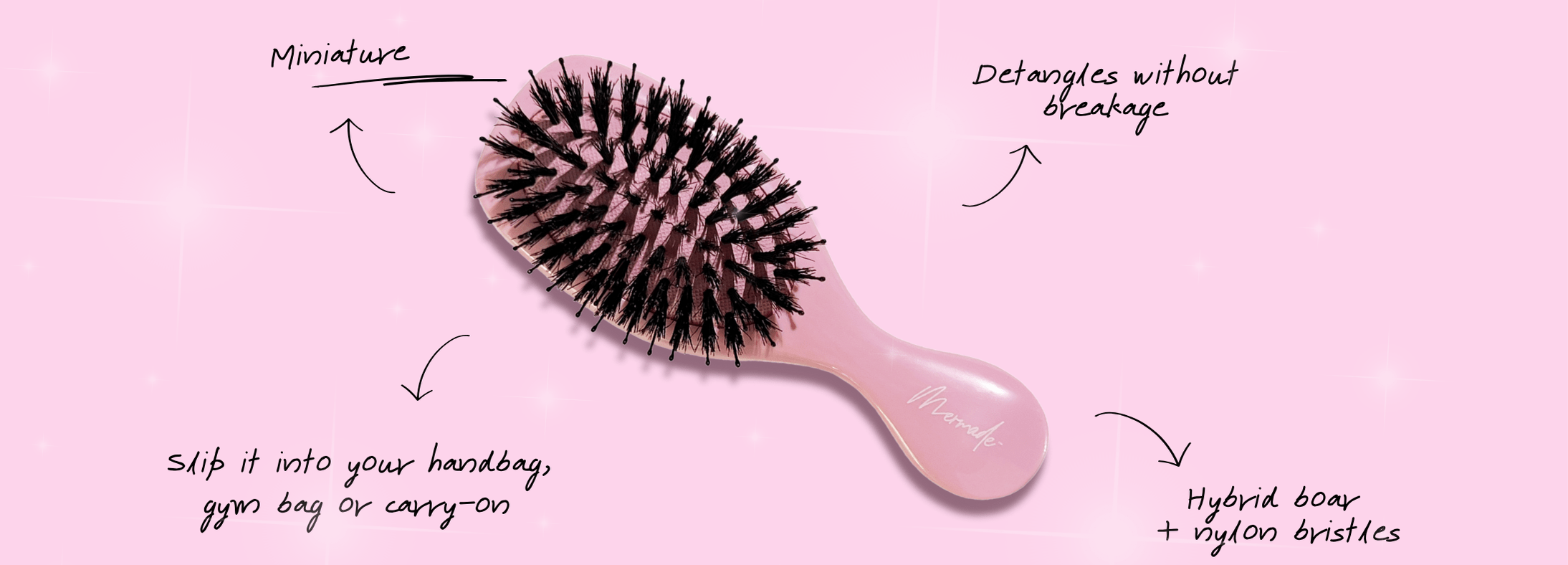 Slip it into your handbag, gym bag or carry-on and you’ll be ready for quick touch-ups wherever life takes you. The hybrid boar and nylon bristles tame flyaways and banish static, while the nylon pins distribute sebum (your hair’s natural conditioner) from root to tip - enhancing shine, boosting strength and encouraging healthy hair growth with every stroke.