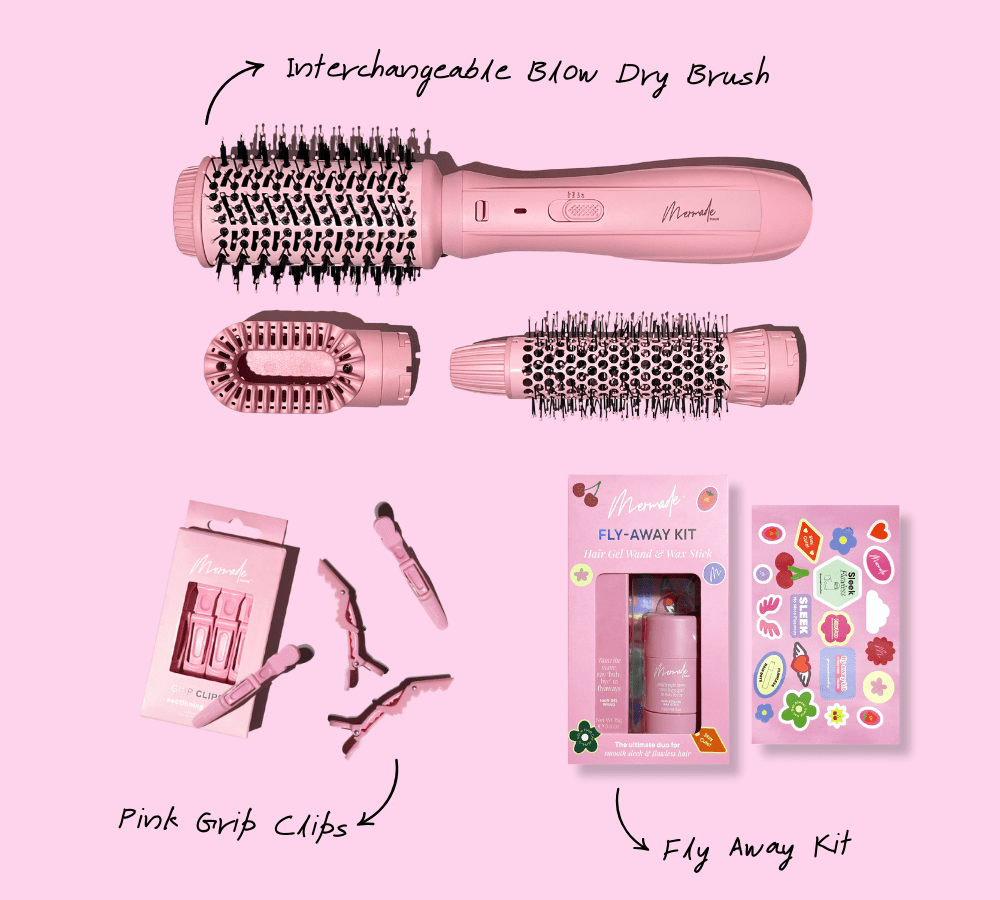 Meet the Slay My Mane Set your new styling sidekick. Whether you’re chasing those big, bouncy blowouts with the Interchangeable Blow Dry Brush or a sleek, polished ponytail with the Fly Away Kit, this bundle has got your back. Easy to use, endlessly versatile, and packed with all the tools you need to slay every day.